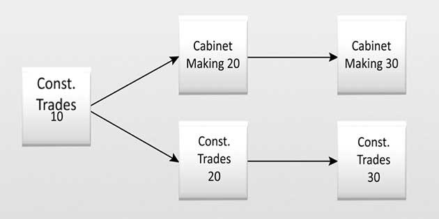 In Cabinetmaking 30 students learn how to build tables, chairs, and countertops. Students also work with veneer and learn about tool maintenance. The program follows the standards of the Cabinetmaking Apprenticeship and cultivates the skills required for the Skills Alberta Cabinetmaking and Joinery competitions.