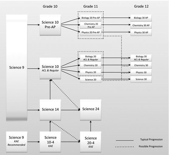 This academic sequence is intended for students considering post-secondary or trade-related career options. It is recommended for students wanting to attend university majoring in non-science academic fields. These courses offer a less rigorous, more general background of biology, chemistry and physics. Science 30 is widely accepted by post-secondary institutions for entrance. It is important to check with individual institutions and faculties for required science courses.